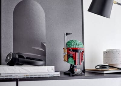 The LEGO Boba Fett Helmet, part of the Star Wars theme, is a crucial addition to the LEGO history as it was released as part of the 40th anniversary of The Empire Strikes Back. It is known for its intricate design and the use of SNOT (Studs Not On Top) techniques, which impressed AFOLs during its release. The set was received favorably and continues to maintain its standing among AFOLs, with many praising its display value and parts diversity. The helmet’s building experience was considered rewarding, and its use of sand green pieces was particularly appreciated. It is notably one of the standout pieces in the helmet series, attracting enthusiasts of both Star Wars and LEGO’s sculptural sets.