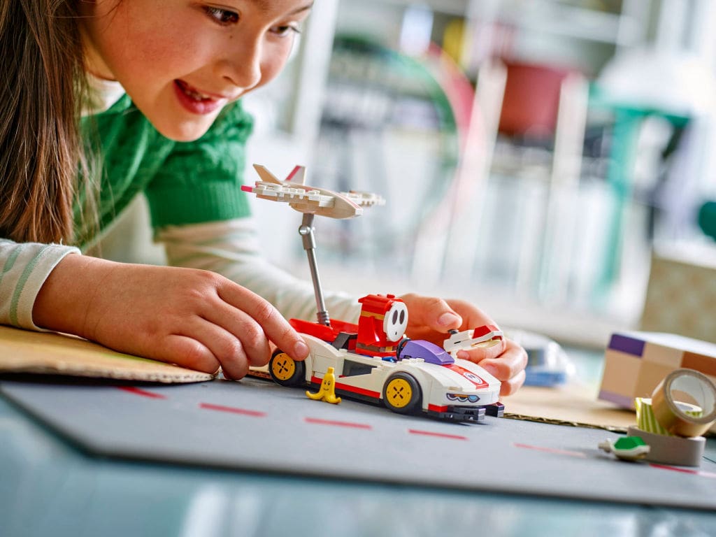 So, rev up your engines and get ready to race with the new LEGO Super Mario: Mario Kart toy building set! With 249 pieces packed full of action and interactive features, this set is a must-have for any young gamer aged 7 and up. Slide the driver’s seat forward to fit your favorite LEGO Mario character and trigger exciting sound and visual effects. Whether you’re launching shells, drifting around corners, or gliding through the air, there’s no shortage of fun to be had with the Shy Guy and his P-Wing kart. Don’t forget to collect other sets from the LEGO Super Mario: Mario Kart range for even more racing adventures and imaginative play!